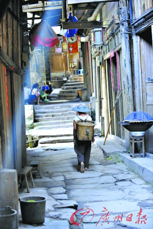 踏著青石板路,陽光透過吊腳樓的青色瓦片和綠樹灑落下來,照在正在打盹的老人和貓咪身上,落在剛出爐的金黃色的煙熏豆腐上,還有年輕女人背簍里孩子稚嫩的臉上。“街有多長,樓有多長,晴不落光,雨不濕街”,這句當?shù)氐乃自,似乎也可以套用在我們廣州的騎樓上,不過對比騎樓,這里更顯寧靜安詳,而且有雕梁畫棟,翹角飛檐,長廊式的房檐隨街蜿蜒,整座古鎮(zhèn)全系青色瓦片蓋頂,紅漆木板竹篾夾墻,圓柱承重,古樸凝重中透出原汁原味的巴渝人家風(fēng)韻。