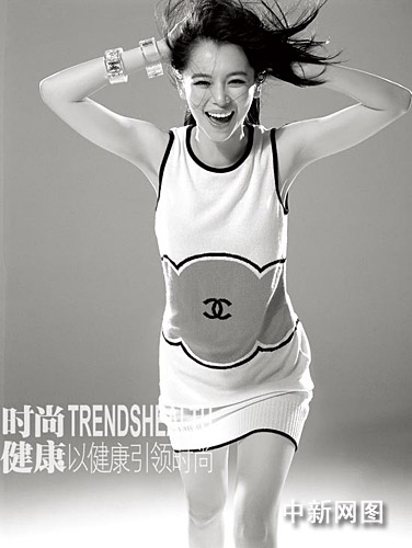 兩個小時的拍攝臨近尾聲,攝影師正要喊“收工”的時候,她急急地說:“我還有很多Free style造型沒有做呢!币贿呂杵鸩ㄎ髅讈喌拈L裙,擺出各種各樣驚艷的姿勢,攝影師情不自禁大聲夸獎:“漂亮!”她立刻風(fēng)趣地接上:“我知道!這不是偶然的,都是我經(jīng)過思考的,我是個‘有智慧’的女人!”攝影棚里又笑翻了天。