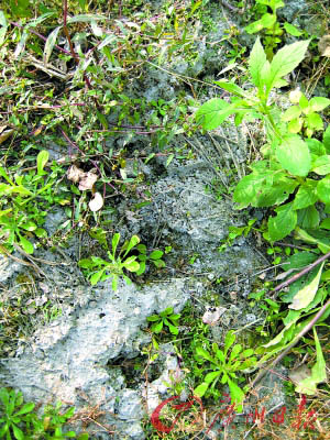 野豬偷食農(nóng)作物時(shí)留下的腳印