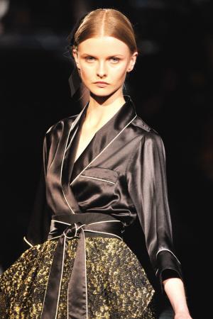 華美之風(fēng)這種潮流創(chuàng)造出一種優(yōu)雅的漫不經(jīng)心,衣服體現(xiàn)了流動性和柔軟性,懸垂感和燃燒的橘色營造出一種新的性感。 (宋笑梅)