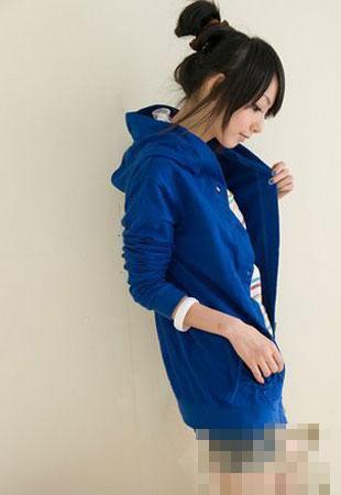 藍色是今年的大熱顏色啦,長外套+短牛仔褲非常休閑,適當(dāng)加上一個手環(huán)就沒那么單調(diào)了。橫條的衣服也能讓過瘦的身材從視覺上脫離竹竿行列。卷起的丸子頭,能更突出美美的五官。