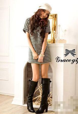 愛做夢、多愁善感、和善溫柔的雙魚座,可以說是12星座中最女性化的。黑色高跟長筒靴非常百搭,翻折的設計能讓短腿的MM也如愿顯出修長美腿,在回暖的2月,走女性化路線的雙魚座女生能放心穿上連身短袖裙,黑白格子非常復古啦,配上珍珠手鏈更顯示女性魅力。這樣可愛的你,桃花運怎能不大旺呢?!