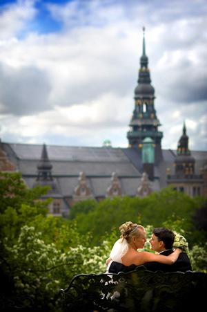 瑞典新婚夫妻享受著博物館花園的恬靜。