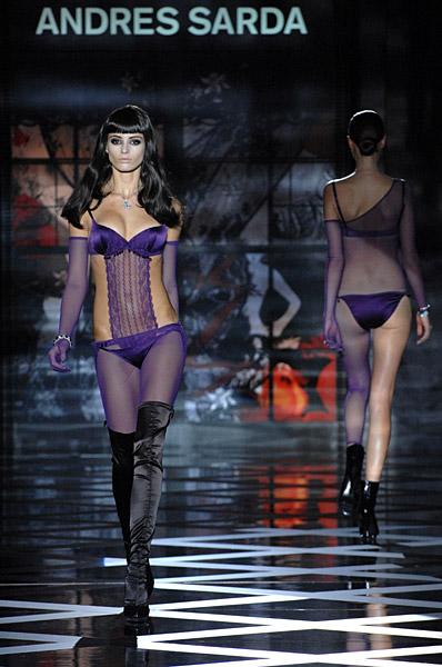 2月23日,在西班牙首都馬德里舉行的時裝周上,模特展示西班牙設計師安德烈斯·薩爾達的時裝作品。當日,在2009/2010秋冬時裝流行趨勢展上,安德烈斯·薩爾達的新款內(nèi)衣作品展現(xiàn)了女性的感性與誘惑,打造出被神秘光環(huán)包圍中驚艷、性感而狂野的女性形象。 新華社記者陳海通攝