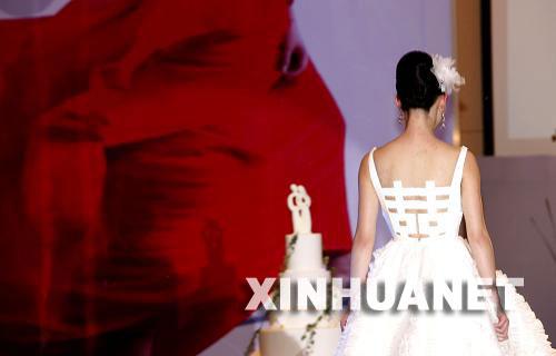 當(dāng)日,一場(chǎng)“中國(guó)風(fēng) 婚禮秀”在上海希爾頓酒店舉行。模特們展示以紅、白、綠、黃為色調(diào)的婚紗,給在場(chǎng)的準(zhǔn)新人和來賓們帶來美的享受。