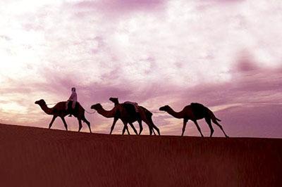 騎駱駝是沙漠之旅的重要環(huán)節(jié)之一,進(jìn)入沙漠,馳騁在雄偉空曠的茫茫沙海之中,盡享“鞍上樂趣”。視線所及之處,都是沙山。連綿起伏的沙丘,映襯著蔚籃的天空,在明亮的陽光下,猶如金色的山峰。當(dāng)微風(fēng)輕輕吹過,兩邊一望無際的沙漠便卷起星星點點的黃沙,在前方的公路上旋轉(zhuǎn)、飄舞。