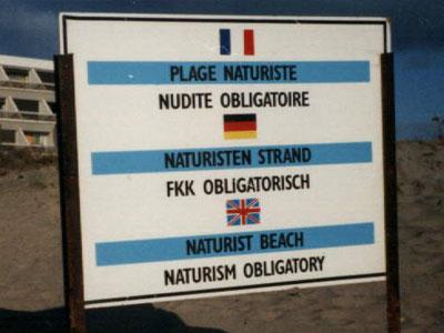 游客開車前往阿德格角,老遠(yuǎn)就能望見路旁的指示牌上用法文寫的“裸體”二字。