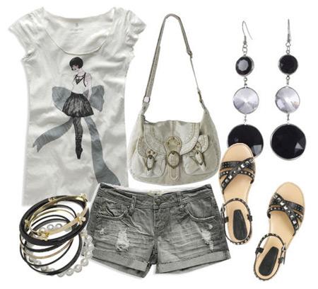 T搭配今夏熱門(mén)的灰色做舊翻邊牛仔短褲,酷味十足。