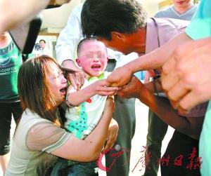 5月9日下午4時許,劉國琴緊緊抱著孩子,聲淚俱下。然而,9歲的小軍卻極力掙脫,哭著撲向養(yǎng)母的懷抱……“孩子乖,不哭,不哭!别B(yǎng)母安慰說,“這是你的親生媽媽!