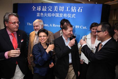 比利時(shí)安特衛(wèi)普政府代表團(tuán)在TESIRO通靈上海亞洲旗艦店對(duì)藍(lán)色火焰鉆石在中國(guó)上市表示慶賀