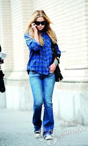 搭配支招:收腰的印花T恤搭配喇叭褲,突出了腰部的曲線,喇叭褲有效地遮蓋住了腿部的肥胖,輕松帶出S型曲線。