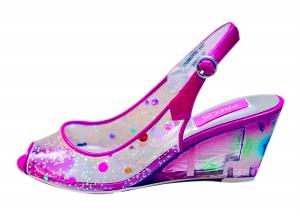 桃紅色透明坡跟鞋(PRECIS,739元)魚口的造型、透明中帶有五顏六色彩紋的鞋身和鞋跟就像一個(gè)精致的玩具,能提高倔強(qiáng)金牛女的親和力。