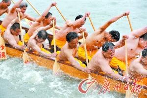 作為主辦方,聚龍村村長(zhǎng)周廣耀說(shuō)。如今已經(jīng)提出“廣佛同城”,我們計(jì)劃從今年起將“世代同飲一江水,獅舞龍騰賀同城”作為今后龍舟賽的口號(hào)。據(jù)悉,由于今年是廣佛同城第一年,前來(lái)聚龍村的龍舟也較往年多,共有32條,10條來(lái)自荔灣區(qū)的山村、海北村等,一條來(lái)自白云區(qū),其他來(lái)自鹽步橫江、聚龍、大瀝謝邊及黃岐等地。在這些龍舟中,其中6條僅游河,26條參加比賽。