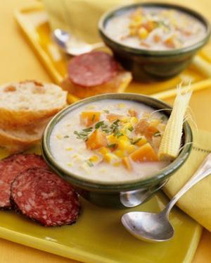 湯類非常有益健康,而且價(jià)格低廉、易于制作?墒,罐裝濃湯是由鹽、脂肪、人造添加劑、防腐劑,或許還有一些脫水胡蘿卜調(diào)制成的營(yíng)養(yǎng)價(jià)值非常低的“混合物”。一罐濃湯含1000毫克鈉,大約是你每天所需量的一半。因此,還是自己準(zhǔn)備雞肉、牛骨和蔬菜,親手做一碗熱騰騰、香噴噴的湯吧。