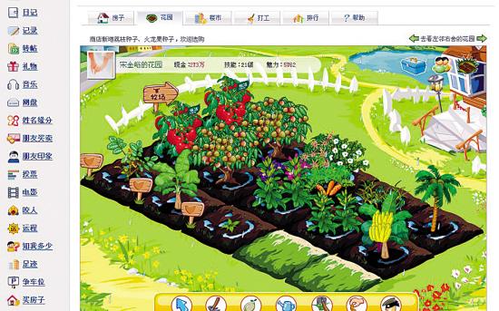 顯然,這個將聊天、游戲和即時記錄、博客的功能融為一體的網(wǎng)站,已經(jīng)吸引了不少25-35歲之間的年輕人。于是,在廣州,在深圳,在北京,在上海,在成都,白領(lǐng)圈子里經(jīng)常會聽到很多人這樣打招呼:“今天你偷菜了嗎?”有調(diào)查顯示,開心網(wǎng)的日均瀏覽量能達到70萬次以上,成了許多人熱捧的交友網(wǎng)站之一;調(diào)查還顯示,“偷菜”成為開心網(wǎng)上最搶手的游戲,讓人“欲罷不能”。