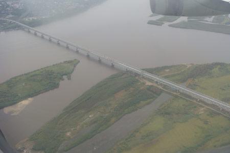 這是從飛機上航拍的哈巴羅夫斯克市內的阿穆爾河(黑龍江)大橋,這不是界橋,這一段的阿穆爾河是俄羅斯的內河。