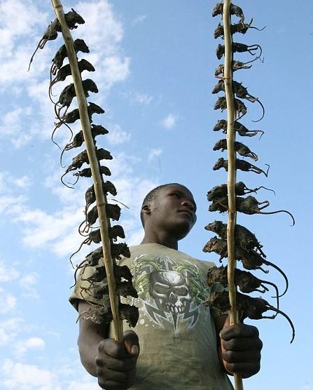 中國日?qǐng)?bào)網(wǎng)環(huán)球在線消息:你能想象嗎?處處被人喊打的過街老鼠如今在非洲國家馬拉維成為了當(dāng)?shù)厝搜壑械摹懊牢丁。?jù)英國《每日郵報(bào)》8月9日?qǐng)?bào)道,如今不少馬拉維當(dāng)?shù)厝藢㈦缰苹蛘唢L(fēng)干的熟田鼠穿成串沿街叫賣,雖然田鼠“賣相有些猙獰”,但是銷路卻十分不錯(cuò)。