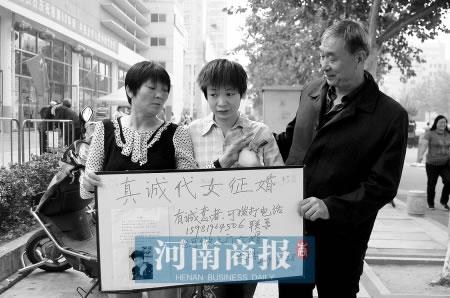 昨日,鄭州鬧市區(qū)內(nèi)出現(xiàn)一對父母“真誠代女征婚”。