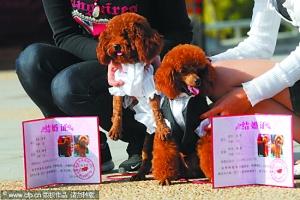 此次共有15對狗狗情侶喜結(jié)良緣。先是狗狗情侶坐車游園一周,然后一一通過紅地毯步入結(jié)婚現(xiàn)場,最后由主持人宣布兩對狗狗結(jié)為夫妻,現(xiàn)場頒發(fā)南京市寵物嘉年華管理中心頒發(fā)的結(jié)婚證書。鐘圖