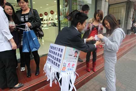 雷人!一河北男子打著光棍節(jié)的旗幟在南京路上跳“草裙舞”征婚,他還給路過(guò)的女孩子派發(fā)“手寫身份證”。昨天上午,一則名為“光棍兇猛,上海南京路求愛(ài)牛人!”的帖子引起了網(wǎng)友的熱議,短短時(shí)間里就有著近百條回復(fù)。大多網(wǎng)友對(duì)這位“猛人”持支持態(tài)度,覺(jué)得這哥們有勇氣,但也有人認(rèn)為這純屬炒作。