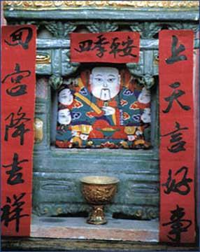 臘月二十三日為祭灶節(jié)。傳說灶神是玉皇大帝派到每個家中監(jiān)察人們平時善惡的神,每年歲末回到天宮中向玉皇大帝奏報民情,讓玉皇大帝賞罰。因此送灶時,人們在灶王像前的桌案上供放糖果、清水、料豆、秣草;其中,后三樣是為灶王升天的坐騎備料。祭灶時,還要把關(guān)東糖用火融化,涂在灶王爺?shù)淖焐稀_@樣。他就不能在玉帝那里講壞話了。常用的灶神聯(lián)上也往往寫著“上天言好事,回宮降吉祥。”及“上天言好事,下界保平安!敝惖淖志。另外,大年三十的晚上,灶王還要與諸神來人間過年,那天還得有“接灶”、“接神”的儀式。所以俗語有“二十三日去,初一五更來”之說。在歲末賣年畫的小攤上,也賣灶王爺?shù)膱D像,以便在“接灶”儀式中張貼。圖像中的灶神是一位眉清目秀的美少年,因此我國北方有“男不拜月,女不祭灶”的說法.以示男女授受不親。也有的地方對灶王爺與灶王奶奶合祭的,便不存在這一說法了。