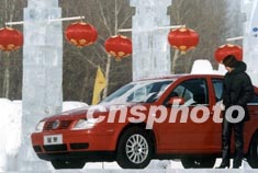 一月冰天雪地的中國汽車名城長春市,將國產(chǎn)新款家用轎車擺放在凈月潭中展示,為新春冰雪萬民游園會的熱銷推介。作者:賈國榮