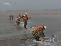 報道說,參加此次冰凌爆破演習(xí)的爆破隊員在黃河厚厚的冰上反應(yīng)迅速、技術(shù)運用熟練。