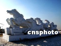 日前,兩座高7米,長20余米的大型雪雕奔馬圖在長春市世紀(jì)廣場落成。該奔馬圖由六匹英俊的奔馬組成,預(yù)示著順利送走馬年迎來羊年,為此吸引了眾多國內(nèi)外游客的視線。樊甲山 攝