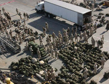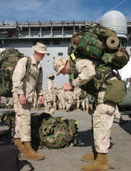一支美海軍陸戰(zhàn)隊(duì)遠(yuǎn)征部隊(duì)正準(zhǔn)備從加利福尼亞圣地亞哥海軍港口,乘坐“好人理查”號(hào)兩棲攻擊艦前往波斯灣。與此同時(shí),還將有六艘兩棲艦負(fù)責(zé)運(yùn)送其它作戰(zhàn)單位一同前往。