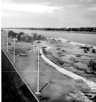 海河左岸:北開渡口至金剛橋段長(zhǎng)1300米,堤岸線向后退18米;