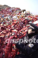 圖:北京警方銷毀價值十五萬元的非法偽劣超標(biāo)煙花爆竹