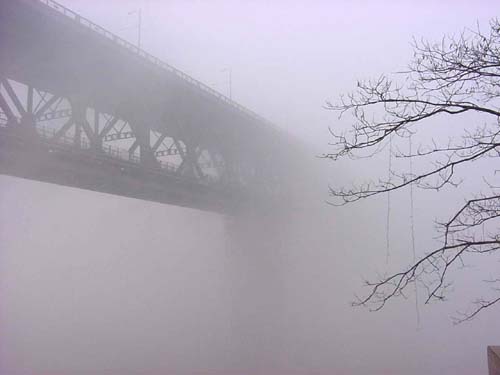 截止中午12點(diǎn)記者發(fā)稿時(shí),江城仍然被籠罩在濃濃的霧氣中。(鐘心程銳)