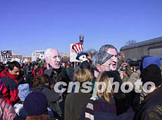華盛頓是這波反戰(zhàn)潮流的焦點(diǎn)。據(jù)華盛頓警方報(bào)告,今天中午,至少有三萬人頂著凜冽的寒風(fēng),參加了在市區(qū)東部舉行的集會和游行。