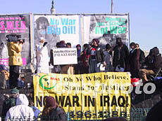 今天活動的組織者是一個名為“現(xiàn)在行動,制止戰(zhàn)爭,結(jié)束種族隔離”(ANSWER)的國際組織。他們稱,此次號稱“越戰(zhàn)后最大的反戰(zhàn)活動”是為了紀(jì)念即將到來的馬丁·路德·金紀(jì)念日。