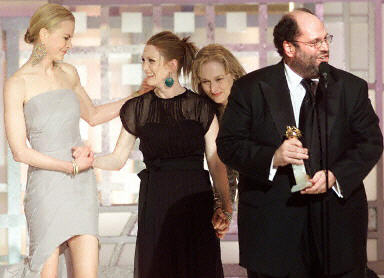 在競(jìng)爭(zhēng)激烈的劇情類(lèi)最佳影片項(xiàng)目中,與《時(shí)時(shí)刻刻》一同入圍的還有《紐約黑幫》、《心的方向》、《魔戒二部曲:雙城奇謀》以及《戰(zhàn)地琴人》。其中雖然有掀起全球票房賣(mài)座旋風(fēng)的《魔戒二部曲》,最后還是由《時(shí)時(shí)刻刻》勝出。
