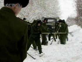 據(jù)參與營(yíng)救工作的阿勒泰公路總段人士說(shuō),嚴(yán)重受阻的六條國(guó)省道路有二百多公里,包括國(guó)道二一六線、二一七線。該段共組成六支搶險(xiǎn)隊(duì)奔赴雪阻現(xiàn)場(chǎng),投入搶險(xiǎn)機(jī)械二百多臺(tái),清理積雪八十五萬(wàn)立方米,僅堆在路基旁的積雪就達(dá)兩米高。目前仍有部分路段需要不斷清除雪阻以保證路面正常通行。