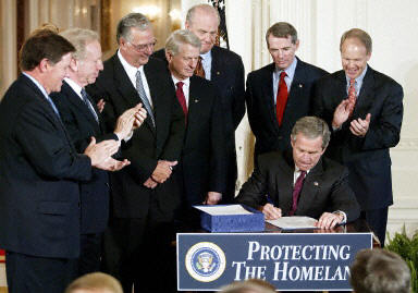 國土安全部是美國在“九一一”恐怖襲擊事件后,布什政府以加強反恐為由而成立的,曾在國會引起爭議。由布什大力鼓吹的有關(guān)議案,一直拖到國會中期選舉后,新國會參議院才以高票通過。