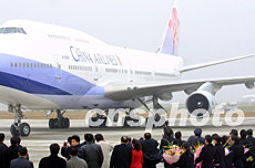 臺(tái)灣中華航空公司包機(jī)返鄉(xiāng)的客機(jī)二十六日清晨飛抵上海浦東機(jī)場(chǎng)(1)作者:張宇