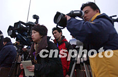 眾多記者等候臺(tái)灣包機(jī)抵達(dá)上海浦東機(jī)場(chǎng)。作者:張宇
