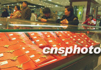 受國際黃金價格連創(chuàng)新高影響,近日,鄭州各商場的黃金首飾價格又攀新高,不少柜臺都標(biāo)到了每克128元,創(chuàng)出幾年未見的高價格。馬健 攝
