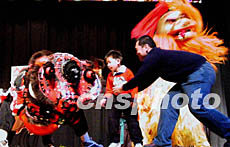 加拿大渥太華的“成功舞獅團(tuán)”二十五日在首都中文學(xué)校表演中國(guó)特色的節(jié)目——《舞獅》。圖為一位在國(guó)外出生的兒童好奇地走到正在狂舞的“獅子”面前想探個(gè)究竟。作者:蒲力