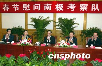 上午九時,衛(wèi)星電話將中國南極長城站、中山站、“雪龍”船與北京聯(lián)系在一起。在聽取考察隊領隊魏文良、長城站站長魏明、中山站站長湯妙昌、“雪龍”船船長袁紹宏的匯報后,溫家寶發(fā)表了熱情洋溢的講話。
