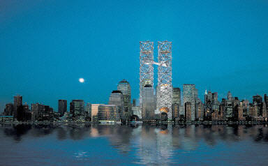 中新網(wǎng)1月31日電 經(jīng)過幾天的斟酌,兩件重建世貿(mào)大樓設(shè)計方案逐漸獲得人們的青睞,其中一件用一對格子塔喚起人們對原世貿(mào)中心的回憶,另一件則顯露出原雙子樓的地基墻。
