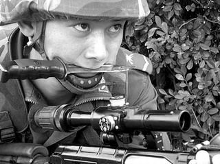 該支隊(duì)前沿指揮所得到情報(bào)后,立即派特種作戰(zhàn)分隊(duì)按預(yù)先的路線分二路縱隊(duì)向2號地區(qū)開進(jìn),協(xié)同公安機(jī)關(guān)封鎖現(xiàn)場,及時解救人質(zhì)、排除爆炸物品、偵毒、洗消現(xiàn)場、搶救傷員、抓獲“恐怖分子”。