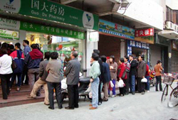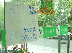 近來,廣東出現(xiàn)非典型肺炎病例的消息傳出后,廣東的廣州、深圳、珠海、東莞等地市民都自發(fā)積極采取預(yù)防措施,各地市民爭相購買白醋、板藍(lán)根、羅紅霉素、抗病毒口服液等藥品。廣州市內(nèi)的各大小藥店生意分外地好,部分藥物已快脫銷。據(jù)廣州市藥材公司業(yè)務(wù)總部的消息,該公司板藍(lán)根沖劑、抗病毒口服液、抗病毒沖劑三種藥物的所有存貨已經(jīng)全部批出,而目前正聯(lián)系各地廠家加緊生產(chǎn),以最快速度投放市面。