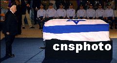 2月10日,以色列總理沙龍出席了為遇難的以色列籍哥倫比亞號宇航員雷蒙舉行的追悼會,與群眾一起緬懷這位以色列踏入太空的第一人。Ic/cnsphoto 攝