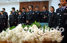 十二日中午,上海浦東“2·8”襲警案中受傷的警員陳衛(wèi)國因傷勢過重,壯烈犧牲,他昔日的戰(zhàn)友紛紛來到追悼會場為英雄鮮花。作者:張宇