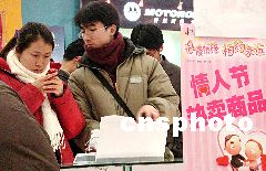 各大超市、商場、禮品店里,正忙著趕傳統(tǒng)春節(jié)“大集”尾聲的精明商家,也同樣沒有放棄對“情人節(jié)”這一絕好商機的競逐。巧克力、情人卡、鉆石飾物、情侶服飾等各種洋溢著浪漫色彩的禮品琳瑯滿目,且紛紛亮出優(yōu)惠“旗號”來“誘惑”愛河中的男女。