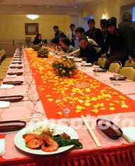 二月十四日是情人節(jié),京城處處彌漫濃情。北京一家服裝公司用黃玫瑰花瓣制造浪漫環(huán)境。西方文化正在潛移默化影響著含蓄拘謹?shù)闹袊说膫鹘y(tǒng)性格。作者:王麗南
