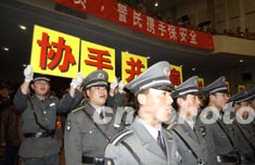 北京西城警方二月十八日舉行“兩會(huì)”保衛(wèi)誓師大會(huì),來(lái)自公安、武警、工商、城管、保安等相關(guān)部門的兩千余人參加了大會(huì)。作者:任海霞